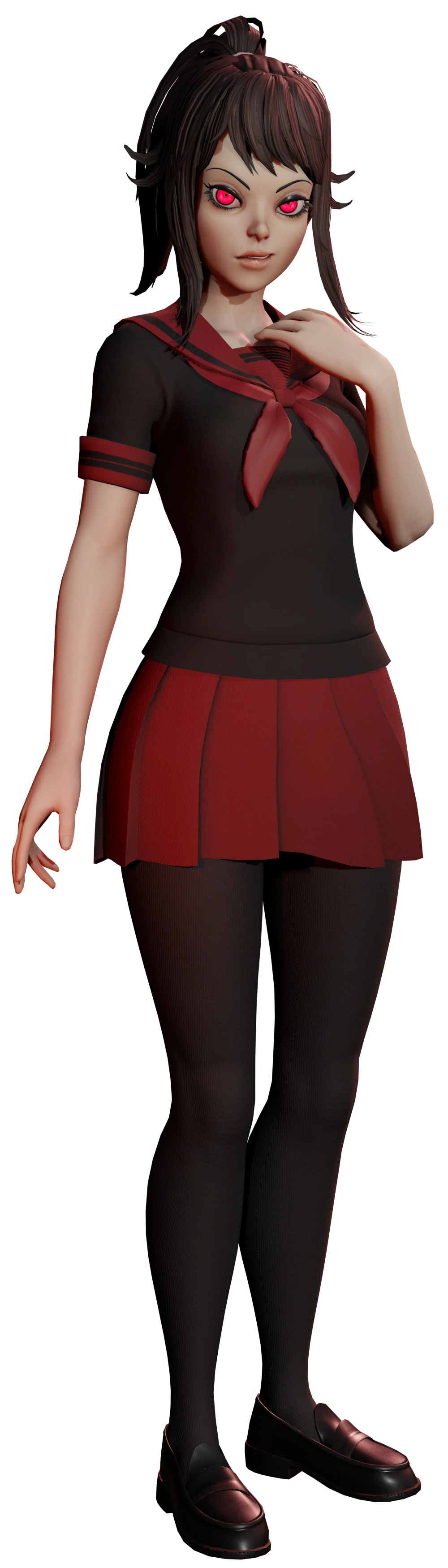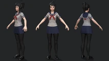 In Yandere Simulator, it is suggested that she has Obsessive Love Disorder, a real-life medical condition which perfectly explains what a Yandere is. Due to her condition, Ayano is shown to be rather extremely selfish and uncaring to others. She only cares about pursuing Senpai as she believes the one that made her complete is the only thing that matters to her, much like her mother. Her focus on getting Senpai's love is most likely powered by her fear of losing her chance to feel alive forever, like her mother felt when she was her age. Due to her Mother's crimes in 1989 and her share of behavior as her mother, Ayano is instantly disliked by those who have grudge against Ryoba such as Kocho Shuyona and Megami Saikou that have clearly no respect for her and do not tolerate her presence in Akademi, despite Ayano having not killed anyone yet, at the beginning of the game. The characters who know her true nature have also hatred towards her and expect her to end up repeating her mother's crimes in the future.