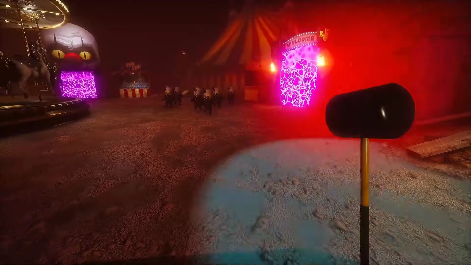 Shortly after rotating, a Clown Gremlin will spawn, wave, and chase after Doug. The tent will continue to spin after this, revealing the blocked-off exit, a secret, and the Zone 2 portal. Doug will need to run around the tent to evade it.
