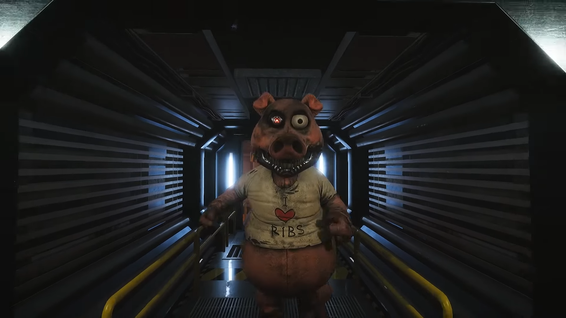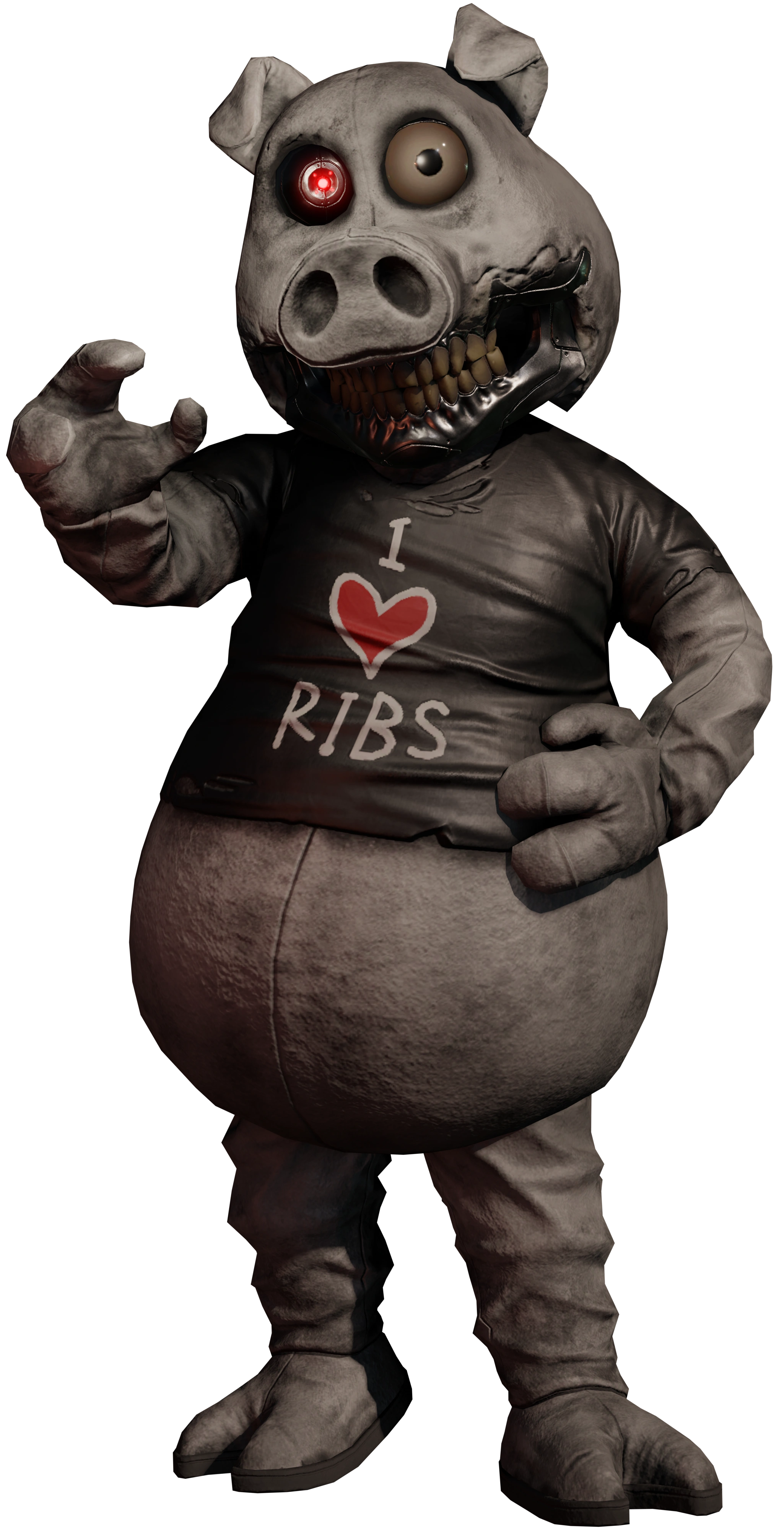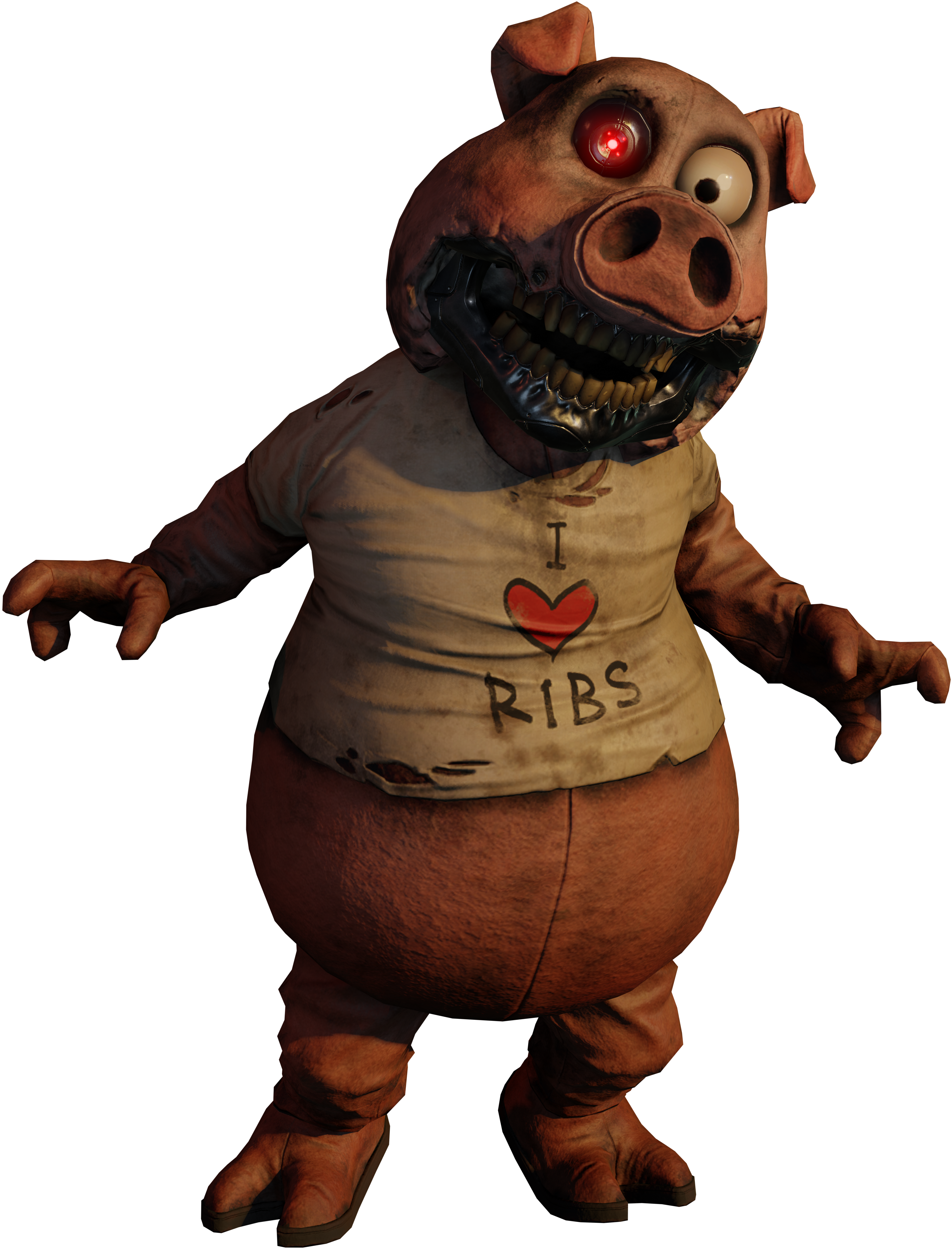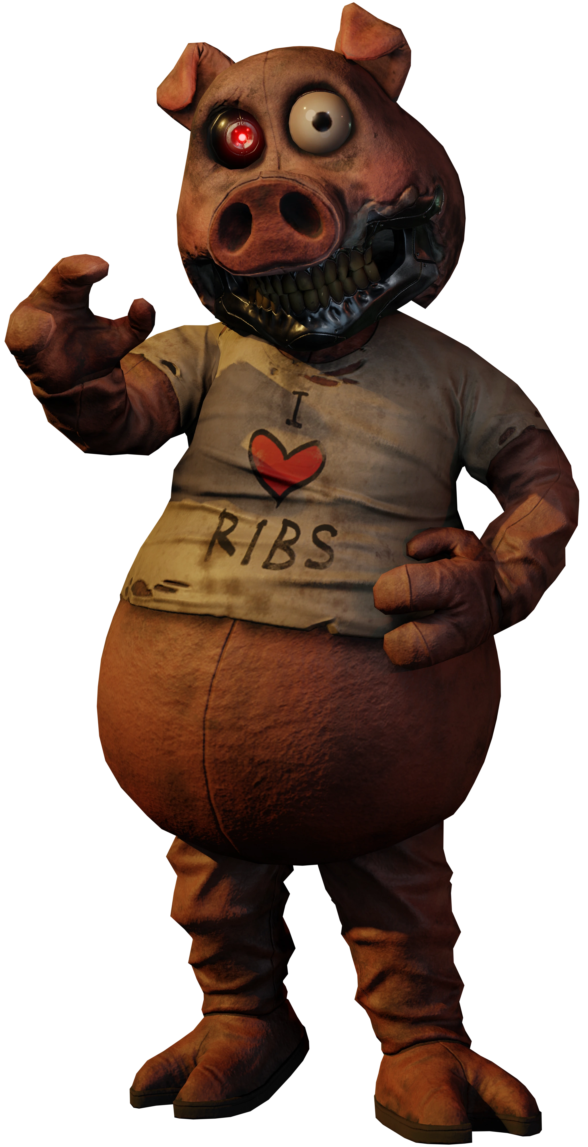 - Hangry the Pig's design is inspired by many animatronic and robotic characters, including those from the Showbiz and Chuck E. Cheese franchises. He may also be inspired by T-800 from the Terminator franchise, Bloaty Pizza Hog from Invader Zim, Jean Bon from Courage the Cowardly Dog, Martin Brown from Hotline Miami 2: Wrong Number, the pig masks worn by John Kramer and his apprentices from the Saw franchise, and Piggsy from Manhunt.