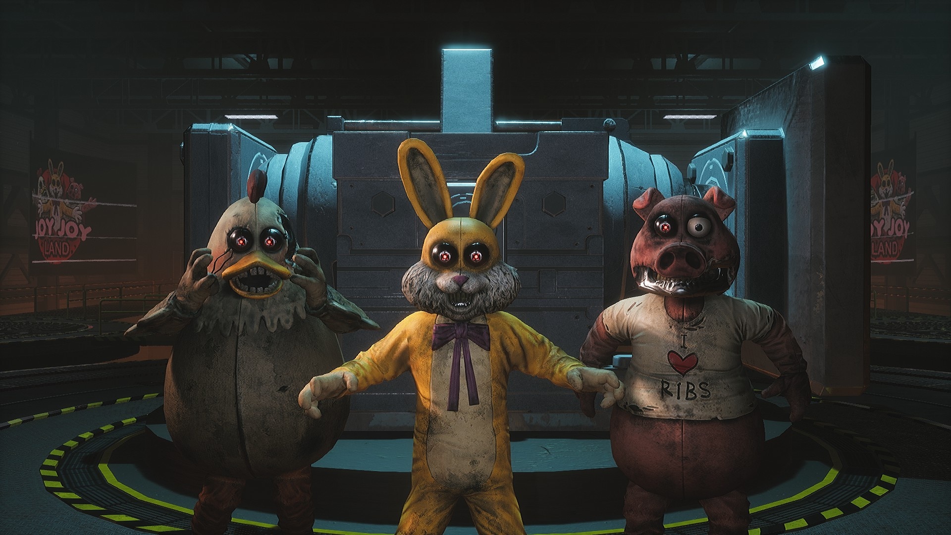 Hangry and the JJG are destroyed by Doug when he activates the crusher. Malak revives them using Project Joy Kill, and Hangry shouts with an appraisal about his new body and how he'll be able to eat way more ribs with it. In one collective, Joy Kill assaults the player until they manage to escape the theme park, only to be stopped in place.