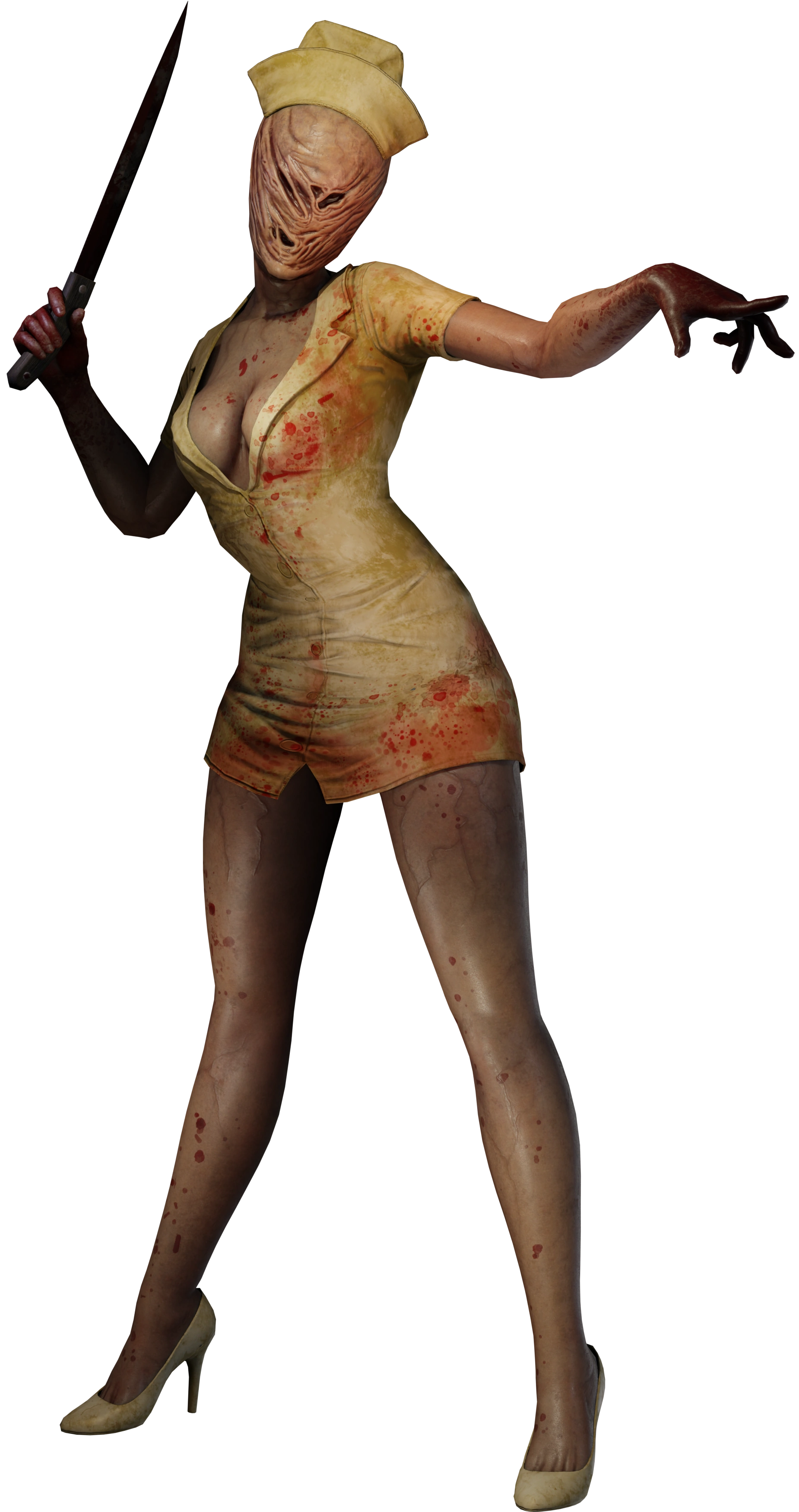 Nurses are iconic monsters from the Silent Hill franchise by Konami, taking on many similar yet distinct forms depending on the source material. The Silent Hill: Homecoming version of the character was released as a playable monster for the Silent Hill DLC pack of Dark Deception: Monsters & Mortals,[1] which also features Robbie the Rabbit, Cybil Bennett, Heather Mason, and the level "Silent Sacrifice", which takes place in the town of Silent Hill itself.