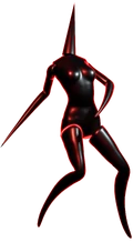 As shown in the end screen, the Red Stalkers appear as slender humanoid mannequins with long pointed limbs and no hands or feet. Their calves are curved. They also have a pointed head, resembling a cone-headed Mannequin. Their limbs seem to be detachable. They do not wear any clothes.