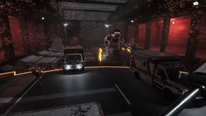 Upon collecting the ring piece and taking an ambulance outside to return, a cutscene plays with the Matron alerting all the Reaper Nurses to chase after Doug with her coming from behind them. One of them reached Doug on the ambulance and proceeded an attempt to stab him with the syringe, but he dodged it, then stunned her and knocked her back with the syringe.