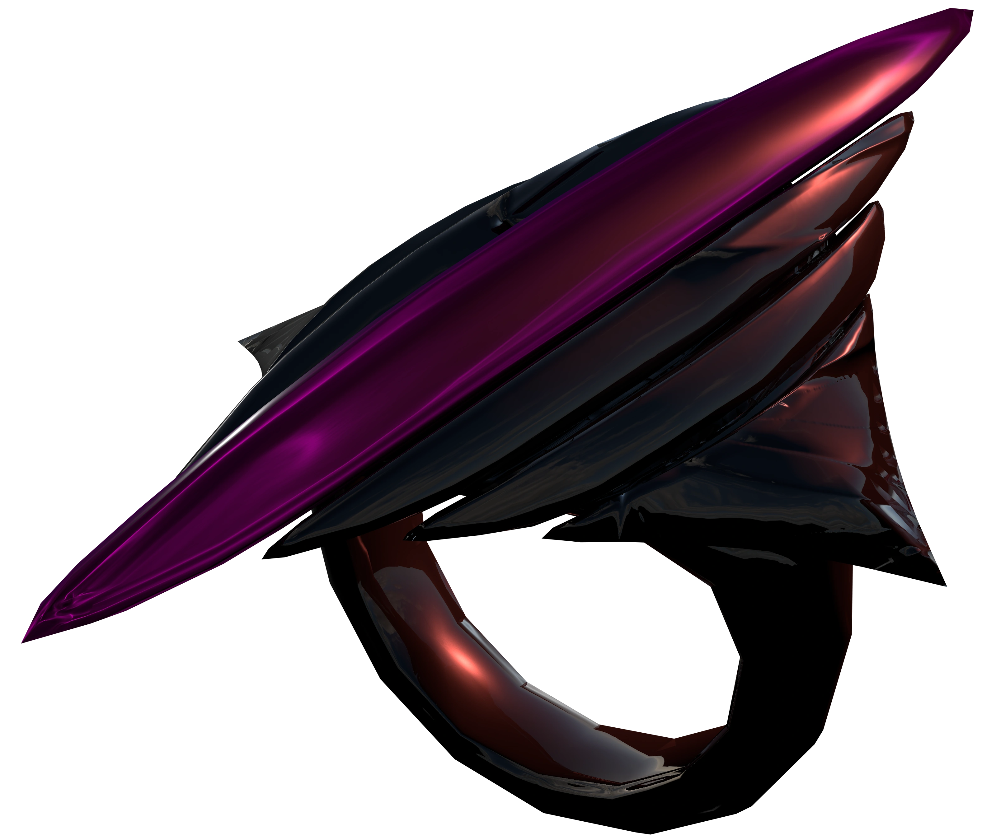The Riddle of Heaven appears as a large ring with sharp edges, and made of the ring pieces, which are made from the Soul Shards, giving it it's purple color.